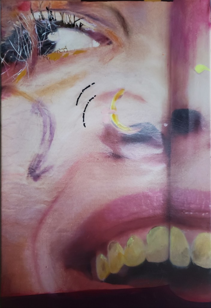 I usually work in series, with different subject matter brought together under one theme, such as “School Days,” “The Shape of Water,” “Silence of Nowhere.”In my latest series, I’ve focused entirely on the narrative of masculinity — men clothed, naked, solid, disintegrating. While male painters have traditionally objectified women as sirens, muses, demons, mothers, etc. I am reaching for a holistic depiction of maleness, not as “mankind” but as a specific gender in a state of disarray and off-balance, which reflects my feelings of where I stand today as a female (feminist) artist looking at men– an anxious stance. In my series “Silence of Nowhere,” I’m capturing the sense of expectancy, of looking outward, but also searching from within. My practice often involves taking the same scene and varying it slightly in different panels, like frames of a film, to signify the passage of time. I start with ink or charcoal and add thin layers of acrylic and watch a drama unfold.